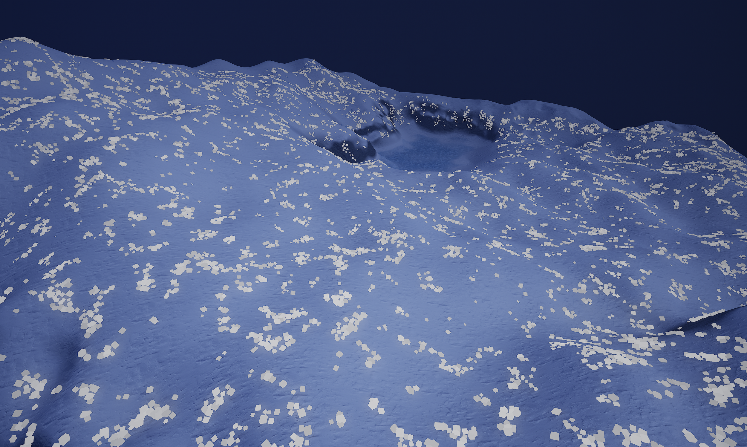 These methods will definitely save me a lot of time when editing the environment. This coming week I plan to fine tune the environment specifically based on the animatic for our green screen test shoot next weekend. Like incorporating where the cocoon will be and the path that she takes in the story to the area where she turns the winter forest to spring. I also want to add more details to the enviornment such as more snow models that are randomly generated and leaves on the ground.